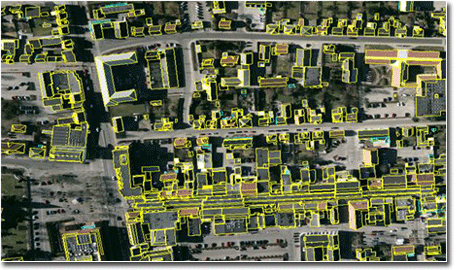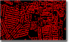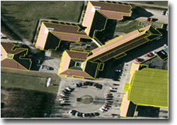 . 1 : 5,000 scale input photos Input vector building bases 3-D vectors of building roofs snapped in XY to provided base