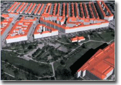 High accuracy on complex roof structures – 15 cms in z & 10 cms in x,y Highly skilled completion on CAD Building wireframes - roof vectors snapped to base Rendered models afterCreating surfaces Over-view of a city area